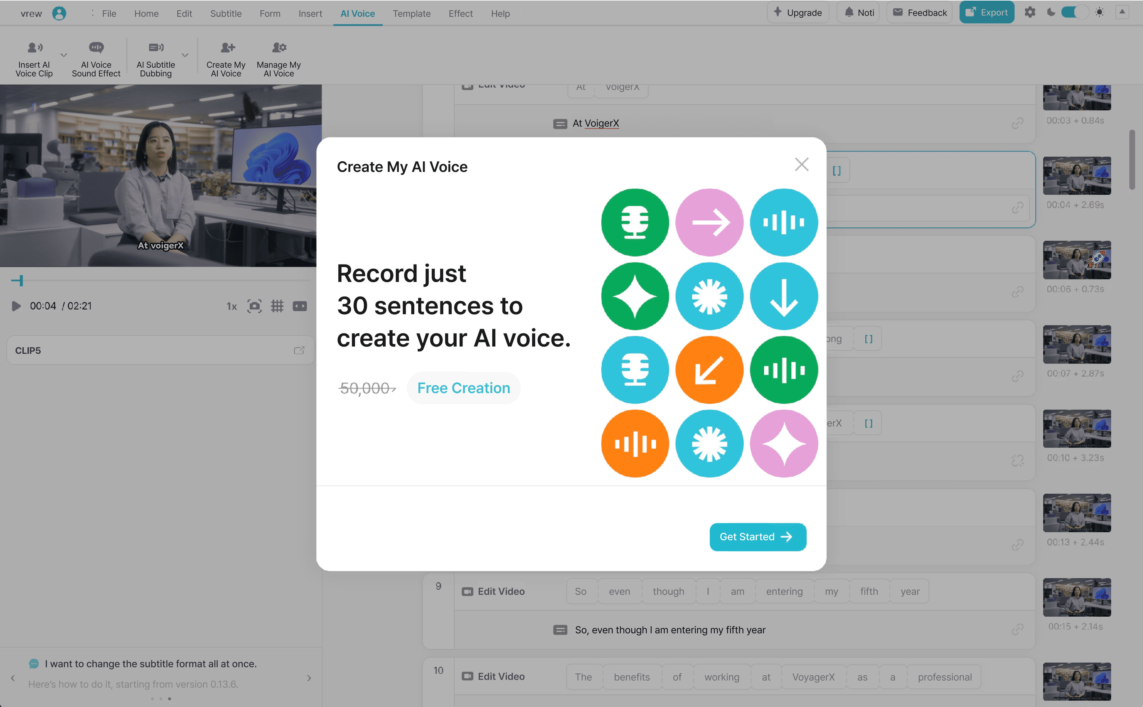 인터뷰나 강의 영상의 음성이 불안정하다면, 내 목소리 AI 만들기를 활용해 보세요. 기존 음성을 안정적인 AI 음성으로 대체할 수 있어요.