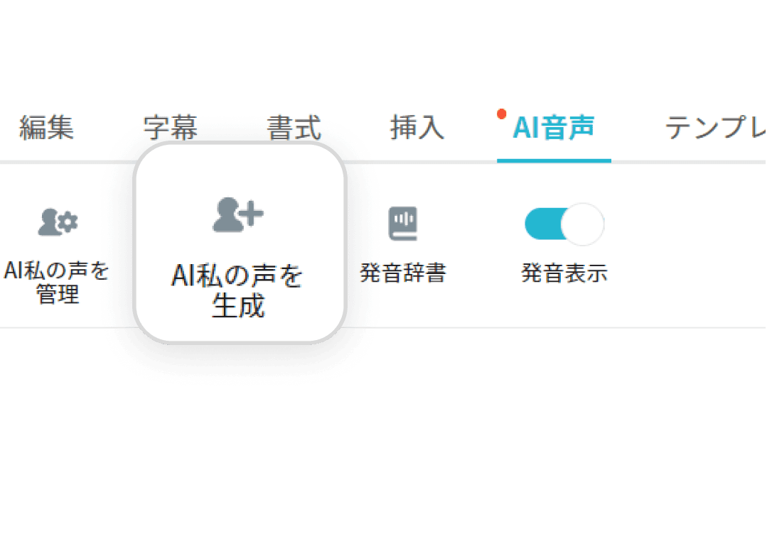 「AI音声」タブの「AI私の声を生成」を