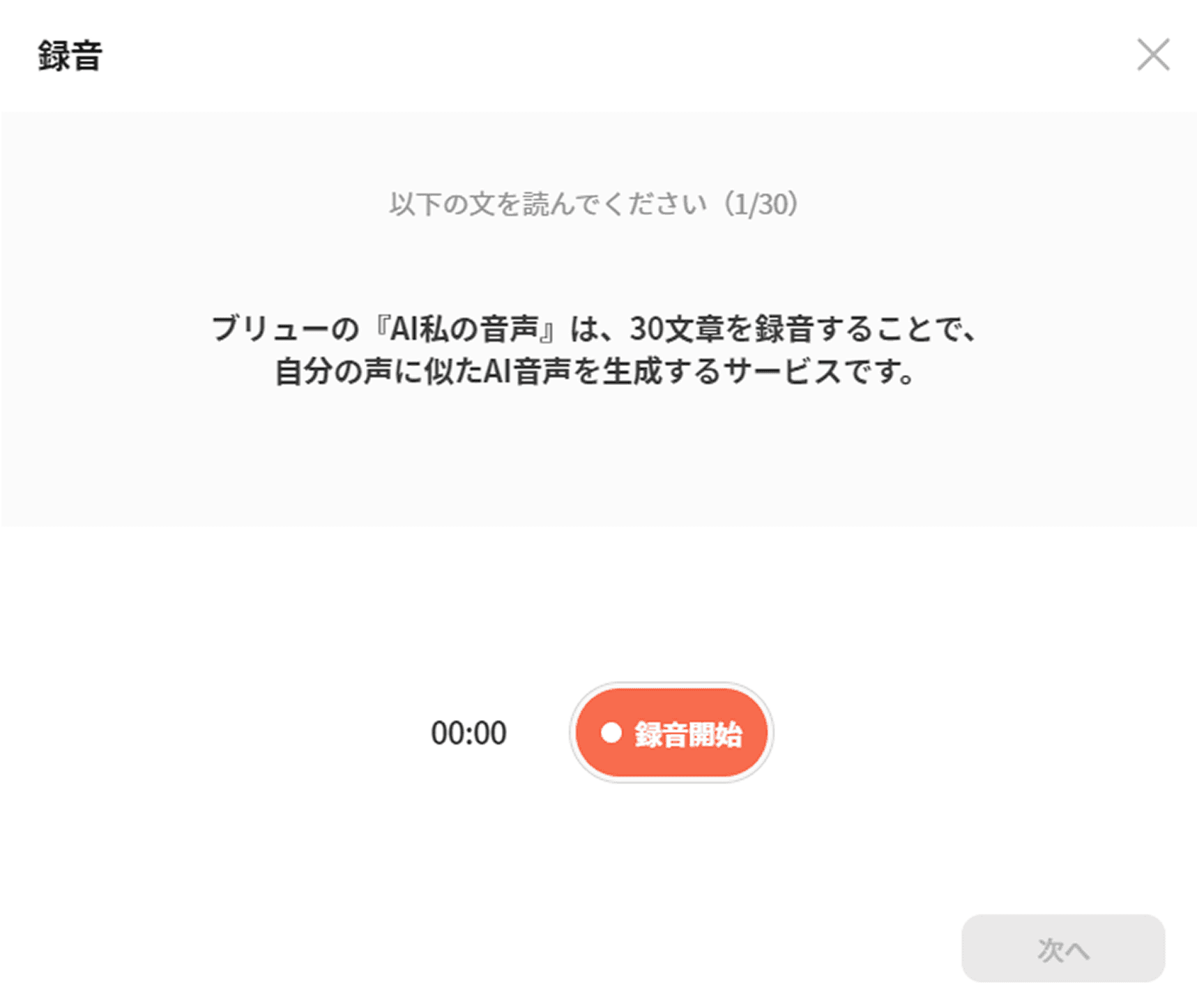 完璧な音声を作るため、Vrewが用意した30文章を読み上げてください。