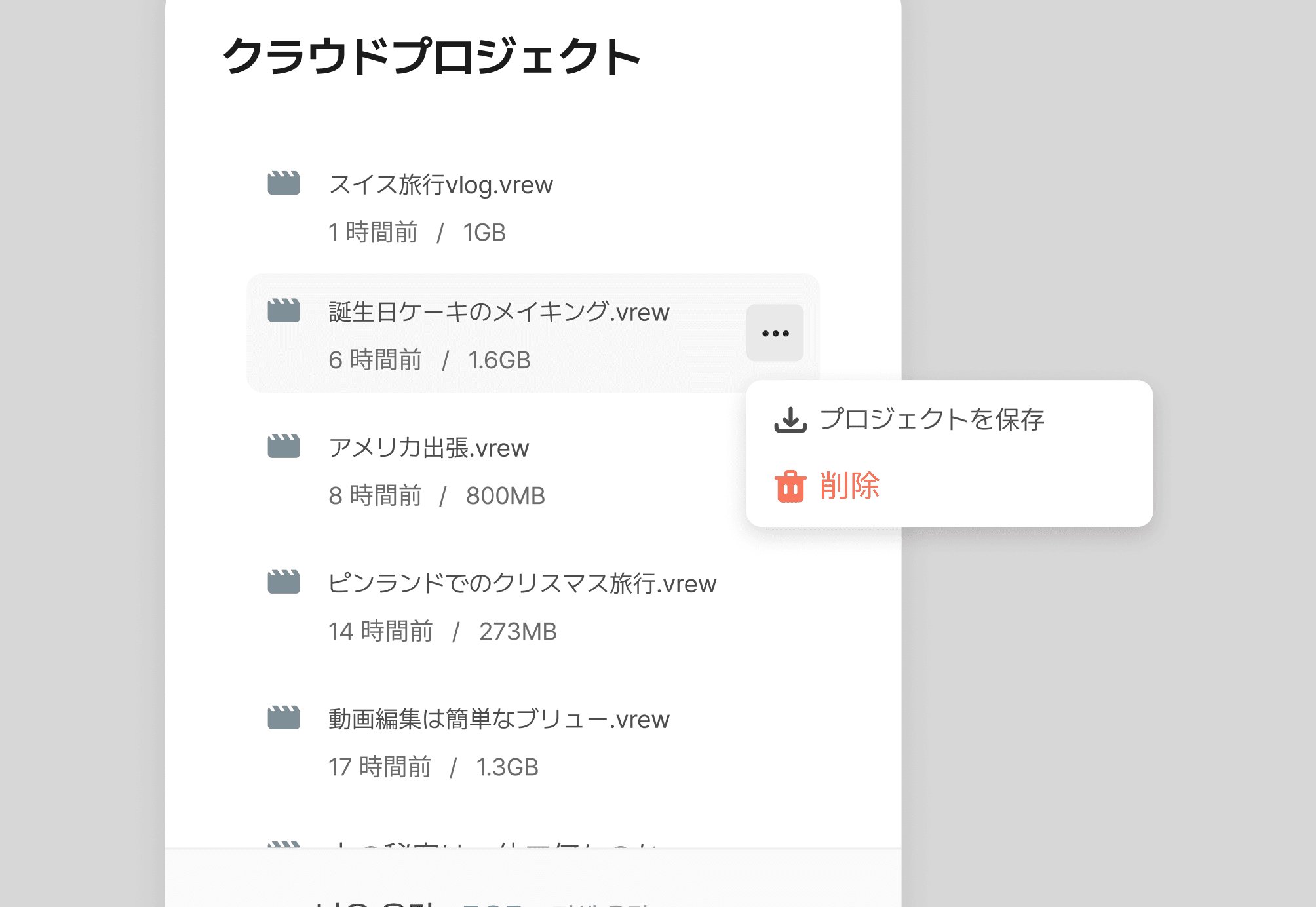 編集中の動画から完成した動画まで、Vrewクラウドで
