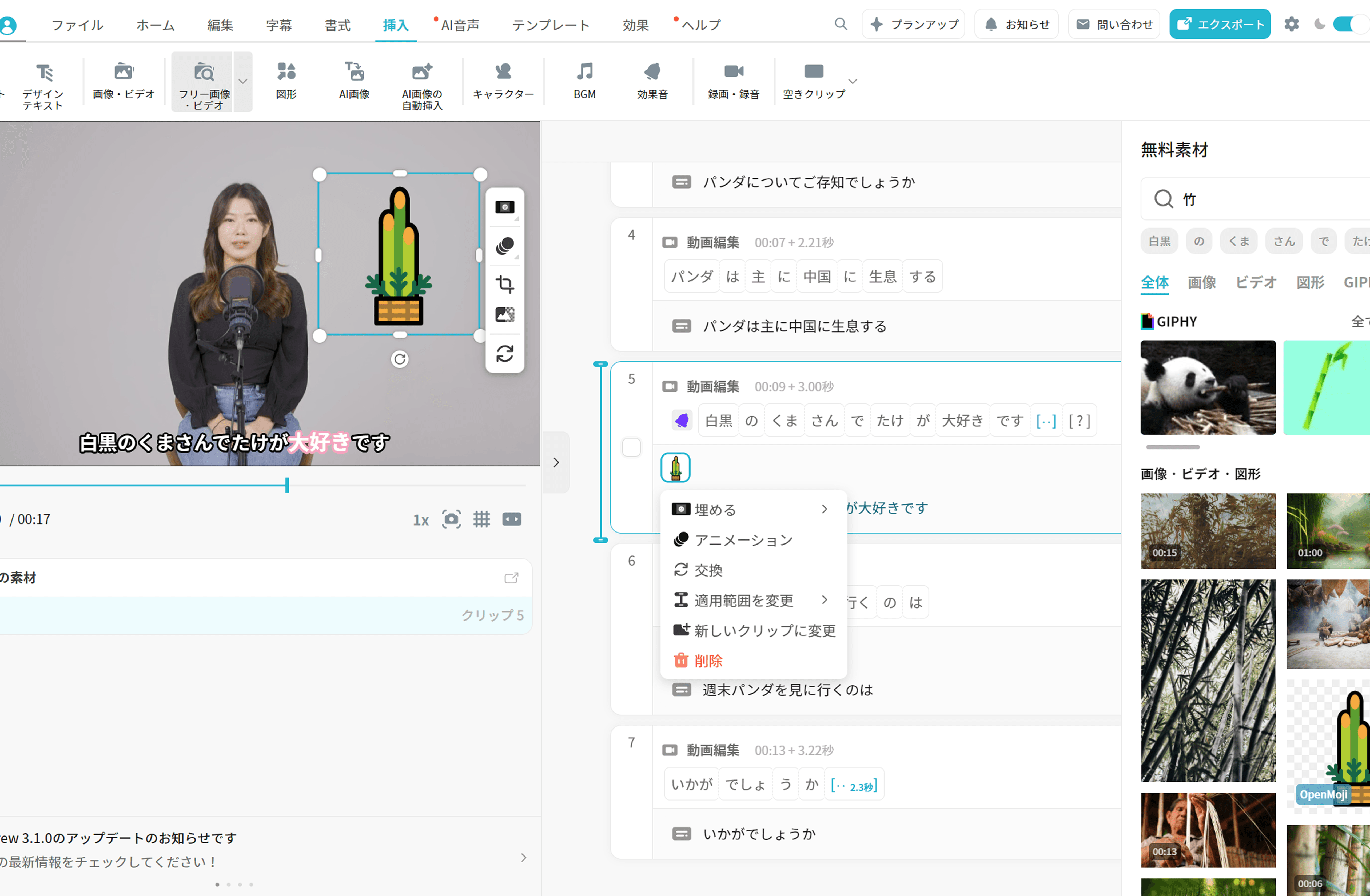 動画編集に必要な素材をVrewではその場で追加してすぐに使えます。