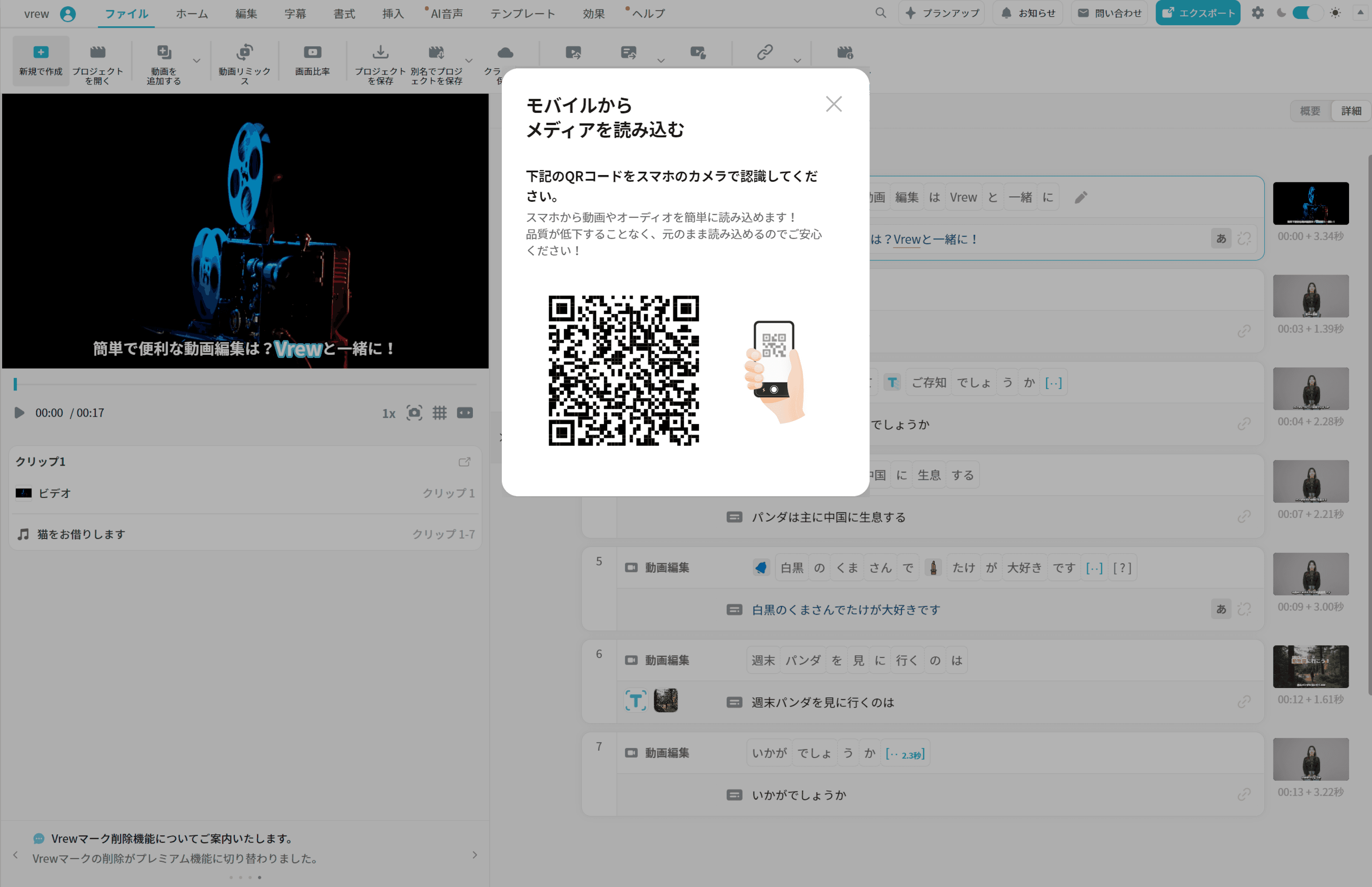 Vrewの画面に表示されたQRコードをスマホで読み取ってください。