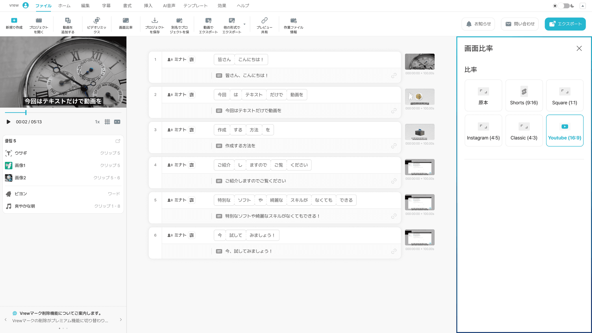 Vrewなら、ワンクリックで動画の比率を変えられます