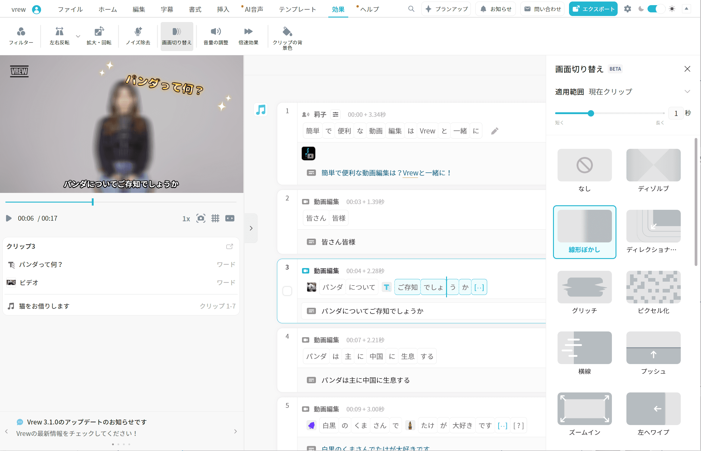 Vrewで動画に効果を適用する方法