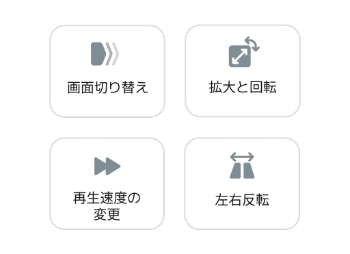 倍速、左右反転など、様々な効果を