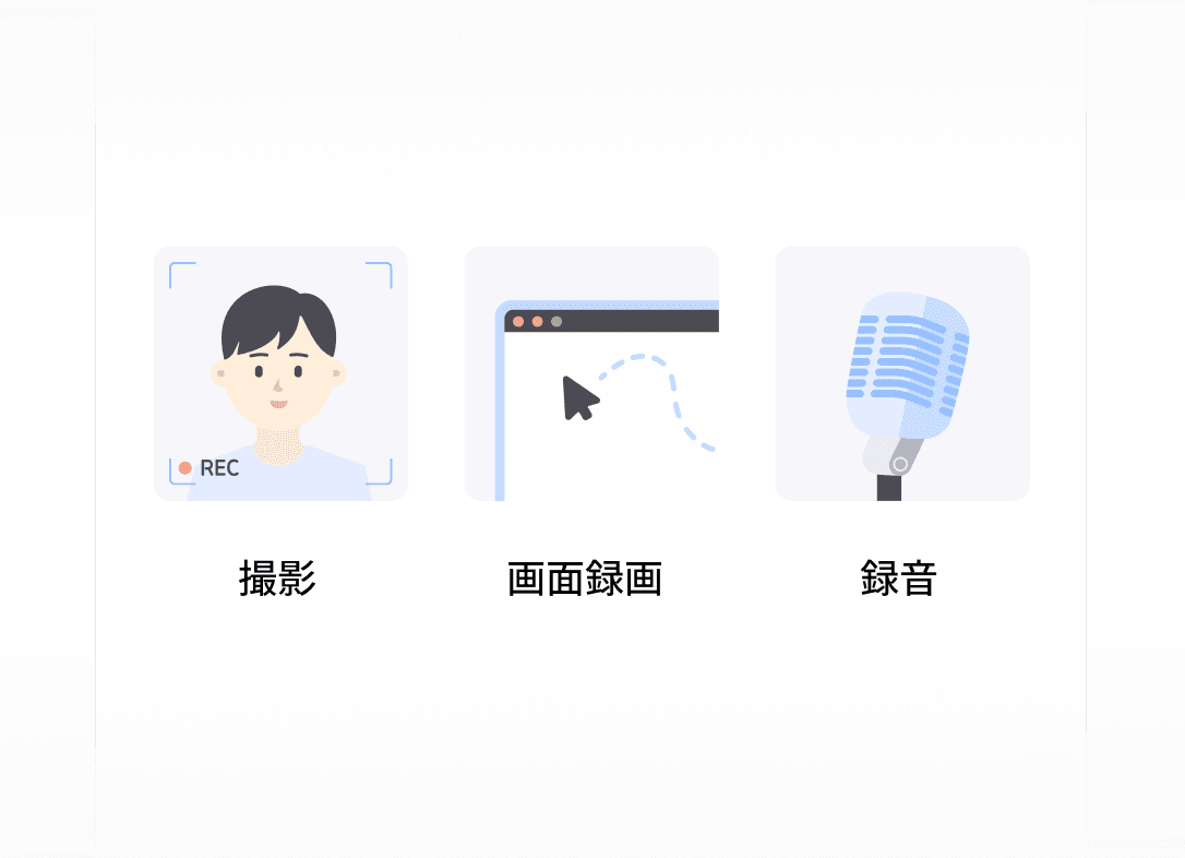 動画録画、画面録画、音声録音中に必要な機能を選択してください。
