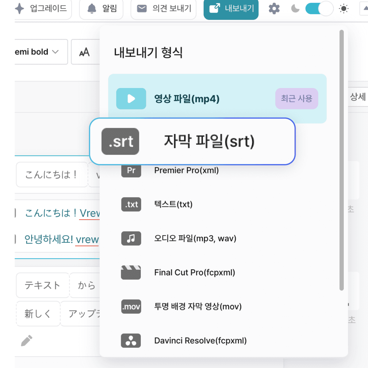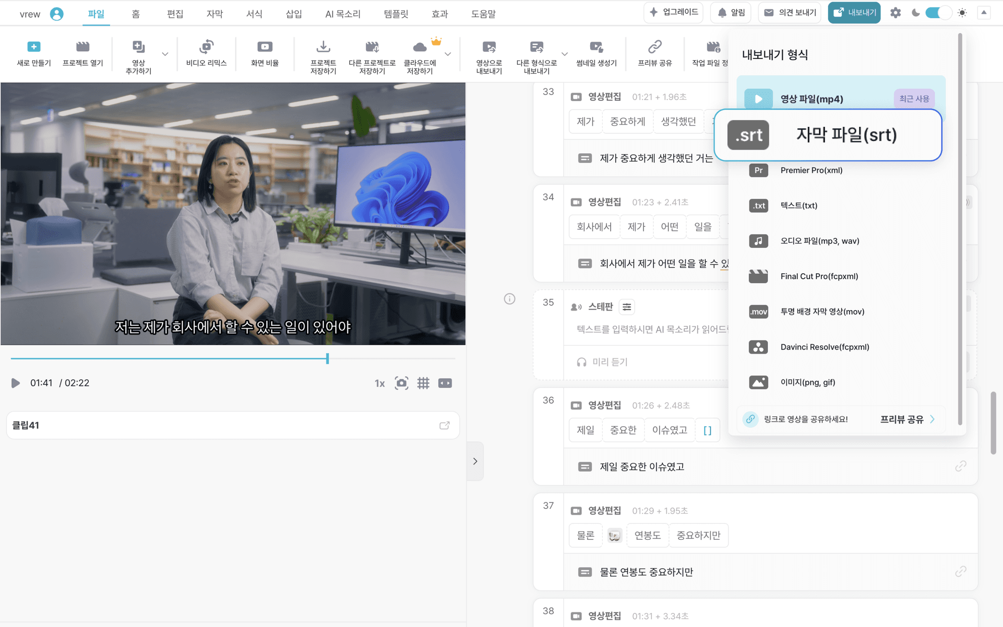 SRT 파일을 외부에서 수정한 후 Vrew로 다시 가져와 적용할 수 있어 더욱 유연한 작업이 가능합니다.
