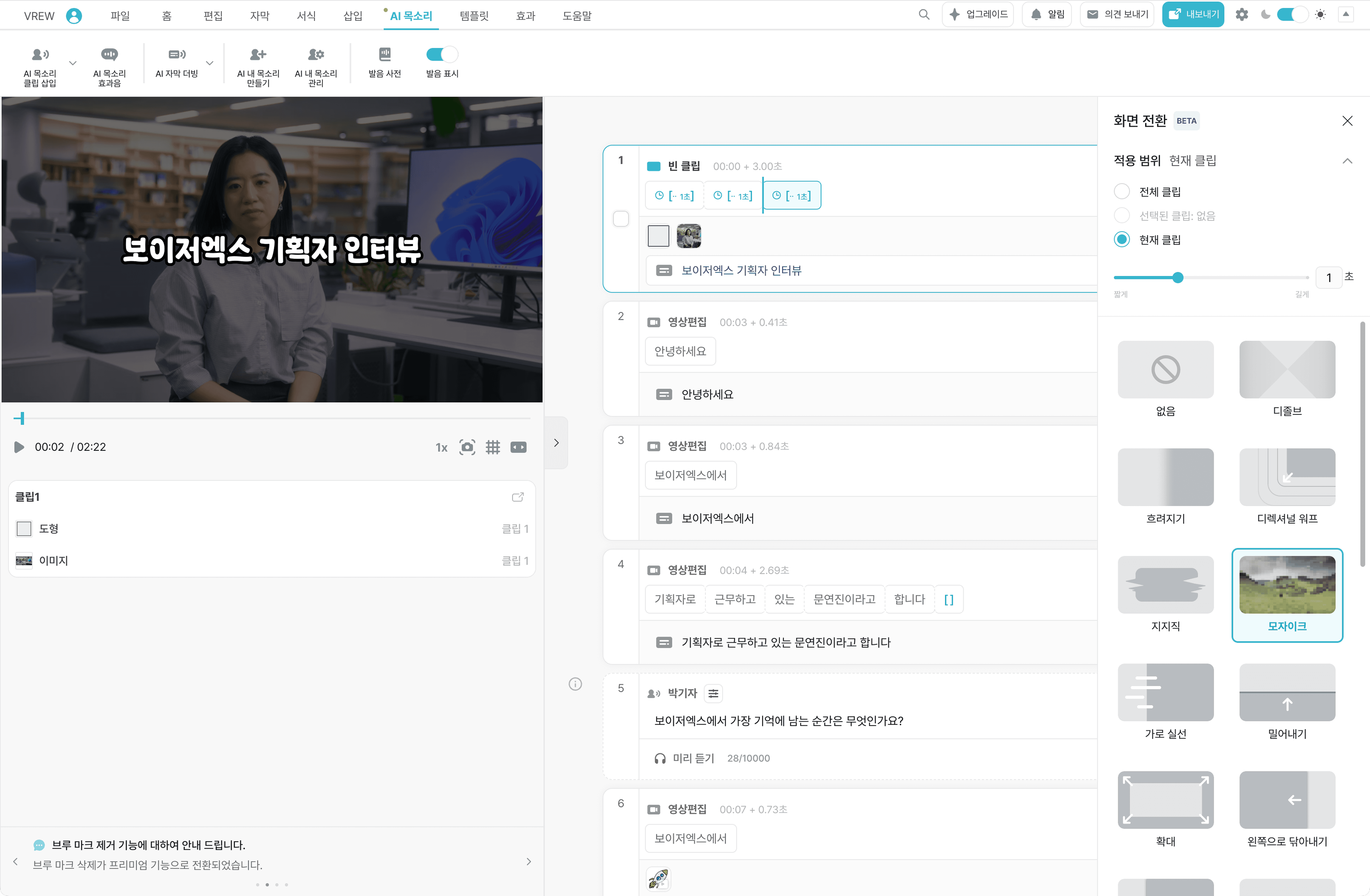 영상을 더욱 역동적으로 만들어 주는 다양한 효과들을 복잡한 설정 없이 간단하게 적용할 수 있습니다.