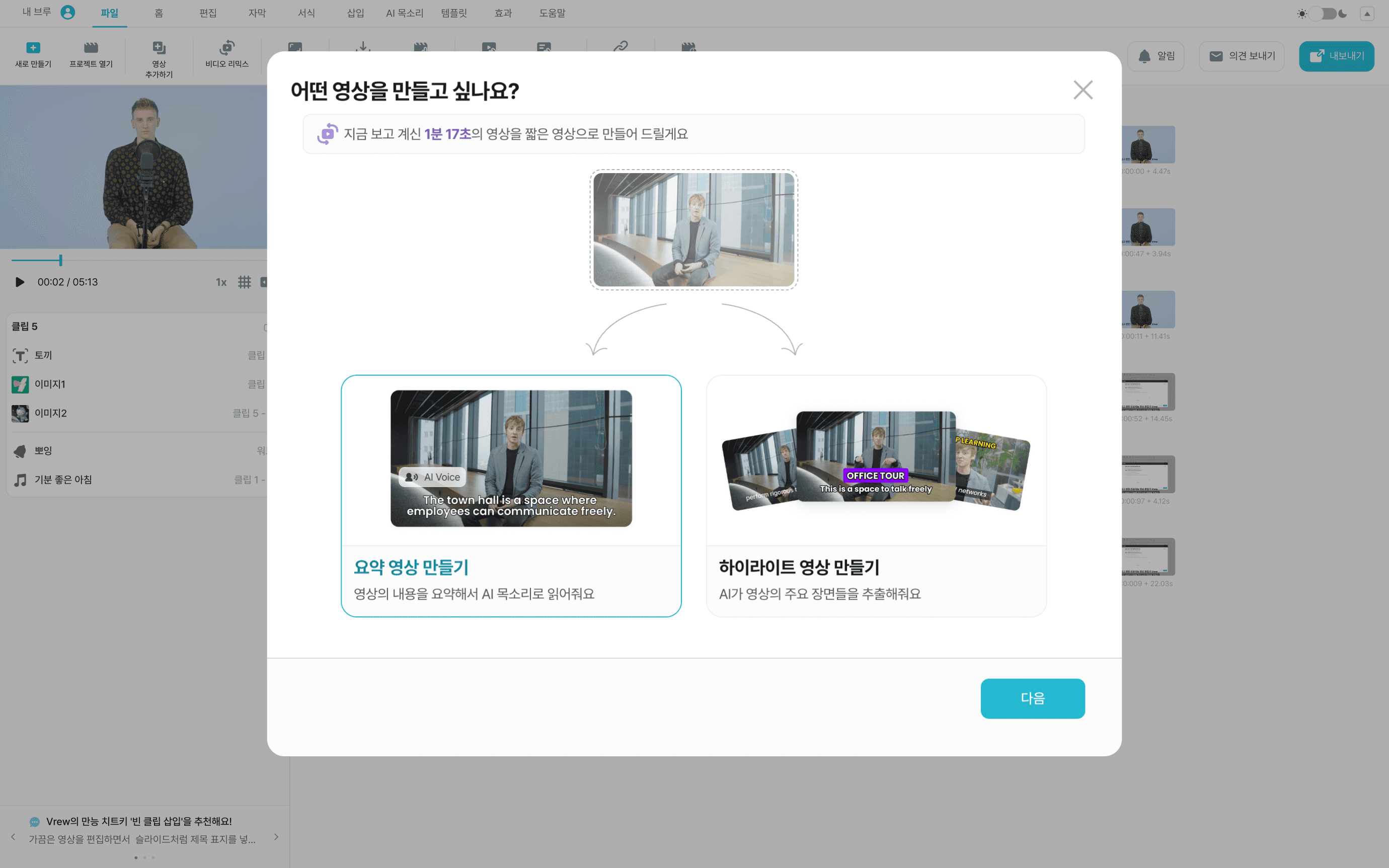 긴 영상 요약이 필요할 때는 AI 요약 영상으로, 핵심 장면만 강조할 때는 AI 하이라이트 영상으로!